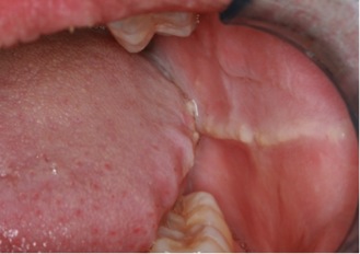3. Cheek Lines – this is where chronic clenching and bruxism causes raised lines along the inside surfaces of the cheeks, invariably bilaterally. Sometimes this is caused by consistently holding the cheek mucosa between the teeth; we might even say the body is providing its own occlusal appliance in these cases.